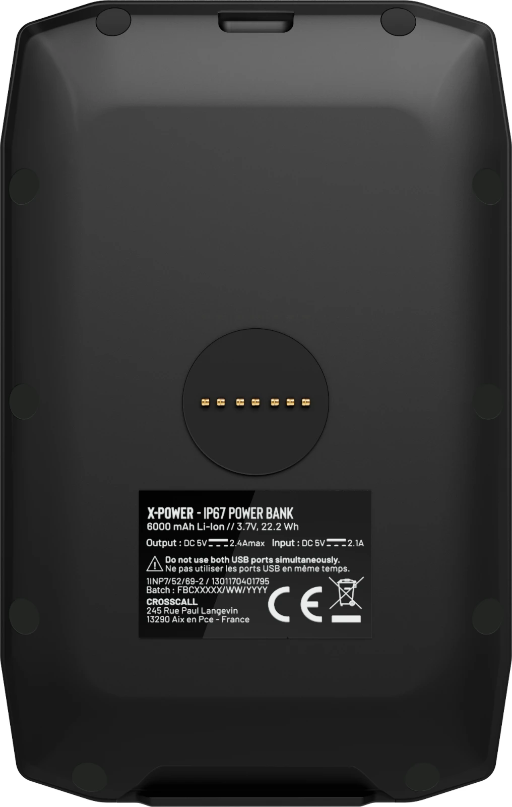 Neben der X-LINK-Magnetbefestigung ist der X-POWER mit einem USB-Anschluss ausgestattet, um alle Ihre Geräte aufzuladen, einschließlich Geräten, die nicht über die X-LINK- Technologie verfügen. Der X-POWER kann über den X-LINK- Verbinder (oben) oder den USB-Typ-C-Anschluss aufgeladen