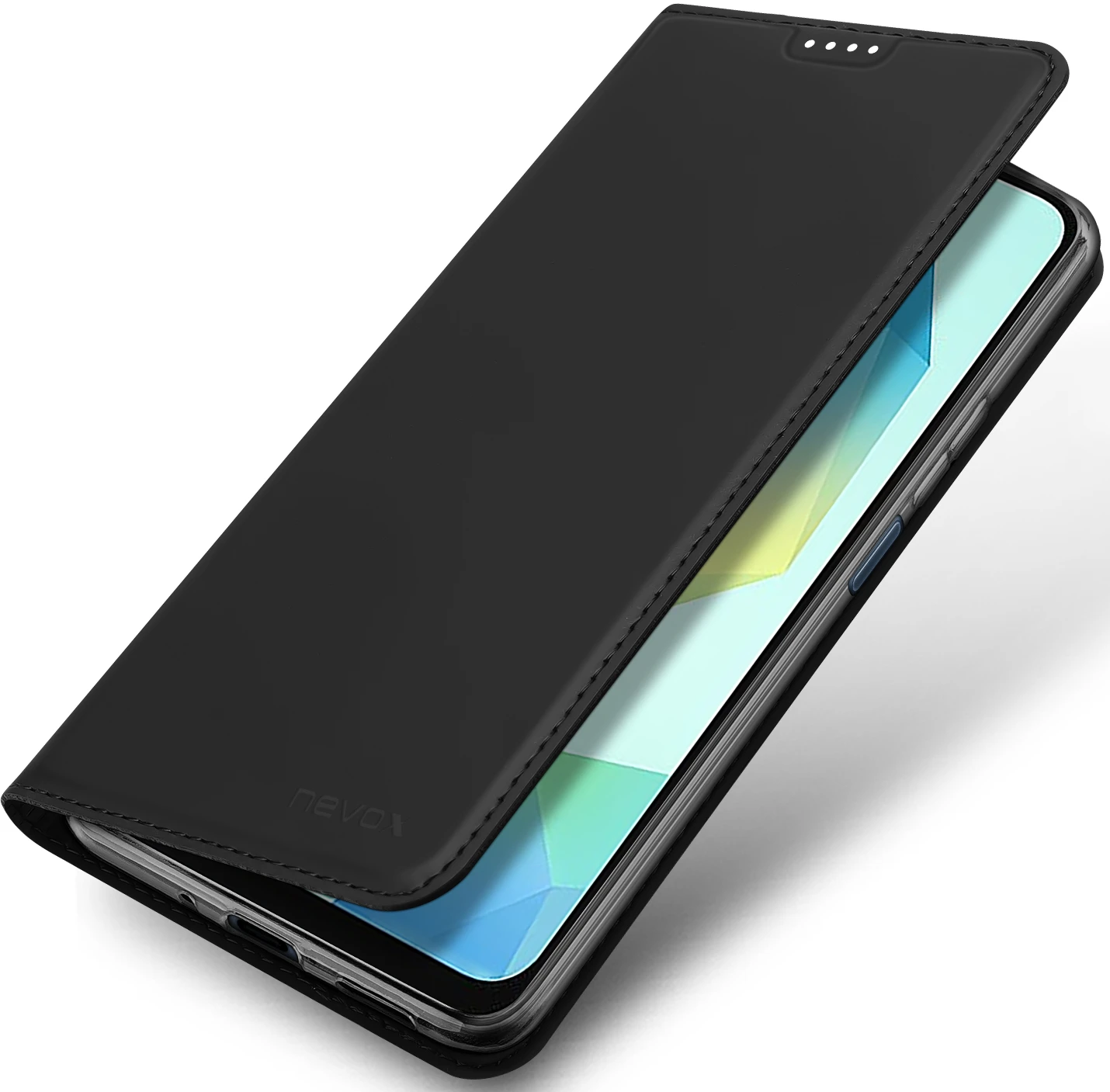 Beim Umklappen der Frontklappe wird diese ebenfalls durch die Magneten auf der Rückseite fixiert, somit ist ein bequemes Telefonieren und Bedienen sichergestellt.